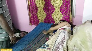 He was really tired but sexy wife needs his dick! Her pussy going wet for fucking!! She calls her secret lover and she start fucking beside her husband in same bed! But anytime her husband may awake!
