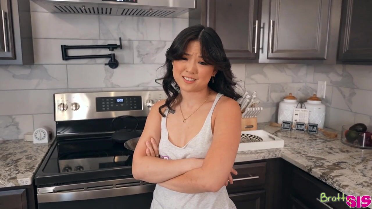 Lulu Chu is making herself a grilled sandwich when her stepbrother Jayden Marcos insists she make him one, too. Turning around, Lulu rips into Jayden about how useless he is. When Jayden protests, Lulu tells him to whip out his dick and prove he has something to offer a girl. They're interrupted by Lulu's mom, so Lulu tells Jayden to impress her by doing stuff around the house and she'll fuck him.Jayden does chores as Lulu watches and critiques his work. At the end, Lulu points out that all her stepbrother has done is show her that he can function like an actual human being. That's not impressive. Impressive would be finding her clit. Jayden manages to find the spot, leaving Lulu moaning and writhing beneath him. Momentarily sated, Lulu returns the favor by getting Jayden on his back so she can suck him off.With Jayden already on his back, it's simple for Lulu to swing her leg across him so she can impale herself on his hardon for a stiffie ride. Leaning back, she rubs her clit until she's pulsing around Jayden's dick. Slick with pussy juices, Lulu gets on her knees so Jayden can dick her down in doggy. Then she rolls onto her back so her stepbro can demonstrate he knows how to make her cum one last time before he deposits a creampie in her hairy twat.