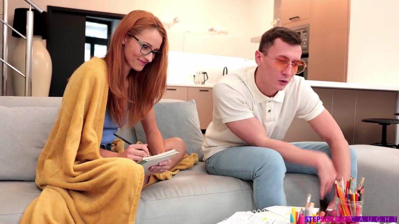 Lucianna Lucci is doing her homework when her stepbrother, Charlie Dean joins her. She invites Charlie to give her a hand. The spicy redhead isn't really looking for assistance with her work; she just wants Charlie to notice her.When Charlie doesn't seem to notice that she is feeling herself up, Lucianna excuses herself and changes into her school outfit complete with a miniskirt and thigh high socks. Gradually, she hikes her miniskirt and begins masturbating her meaty slit. Charlie finally pays attention and freaks out, but Lucianna is done taking no for an answer. She closes Charlie's laptop and pulls his dick out to give him a handie and then a BJ.Since Lucianna is already nice and wet from masturbating, it's easy for her tight twat to eat Charlie’s hardon as she seats herself for a cowgirl ride. She falls to her side so he can fuck her as they spoon, then resumes her stiffie ride in reverse cowgirl this time. Charlie plows his stepsis as she lays on her back, then keeps up the pussy party in doggy. As soon as Lucianna has been sated, she gets on her knees to take a nice facial courtesy of her stepbrother.
