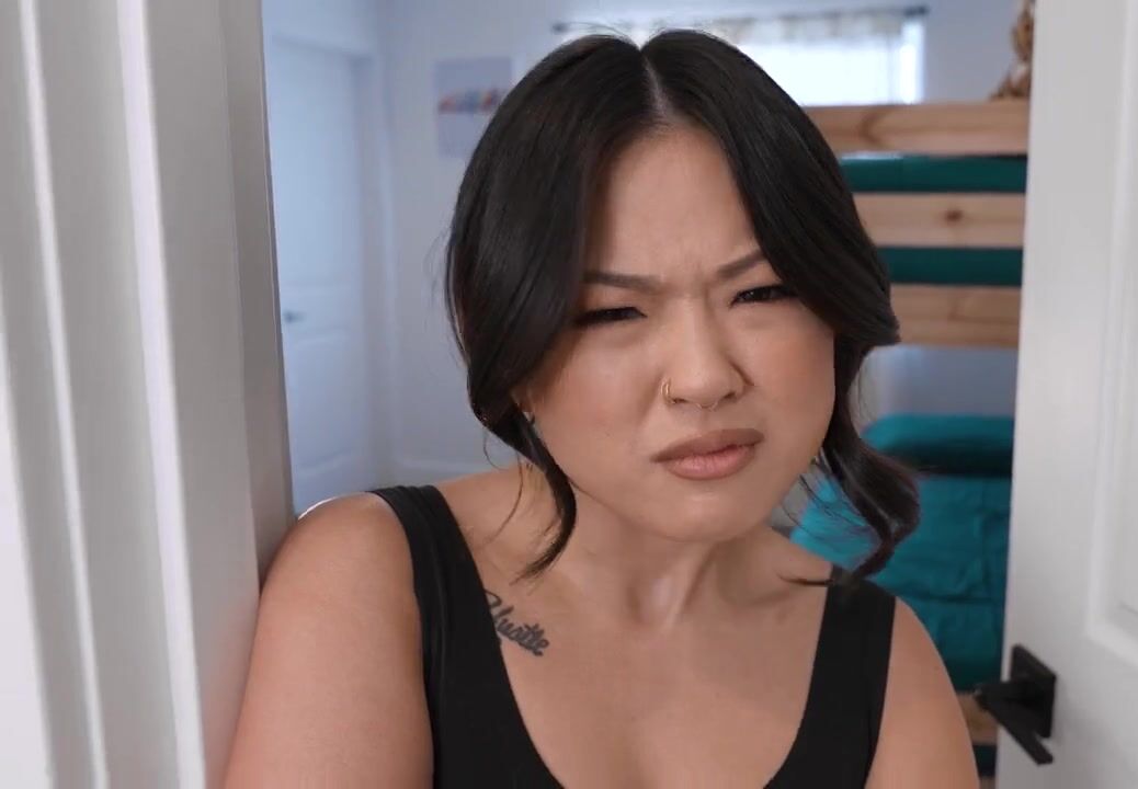 Sage Roux and his stepsister Lulu Chu argue about who is going to use the shower first. Lulu asks Sage if his dad is around, then tells him he can use the shower first. Sage is confused, but he takes her up on it.As soon as Lulu thinks Sage is showering, she sneaks into the kitchen to suck his dad's dick. Saage catches her in the act, but Lulu silences him by showing him some tit. As soon as Sage's dad blows his load in Lulu's mouth, he takes off leaving her unsatisfied. She offers to suck his dick and fuck Sage if he'll keep quiet.Leading Sage to the couch, Lulu kicks things off by blowing him before she climbs into his lap to ride in cowgirl. Turning around for reverse cowgirl lets Lulu moan as she takes her stepbro nice and deep. She rolls onto her back so Sage can dick down her trimmed twat, then gets on her knees to get finished off in doggy. Opening wide, Lulu lets Sage pop in her mouth so his cum dribbles down her chin. They agree they should do this again sometime.